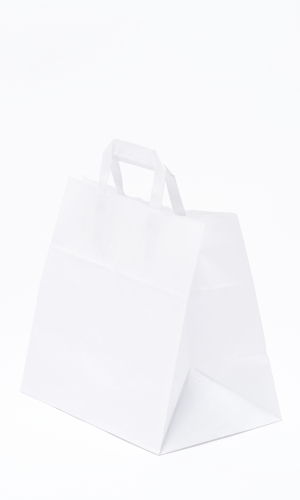 Különböző alkalmakra papírfüles papírtáska, kedvező ár. Utólag emblémázható 1 vagy 2 oldalon, 1-4 direkt színnel szita eljárással. Flexo nyomtatásra kérje egyedi árajánlatunkat. Alapanyag: 70gr/m2 Fehér Nátront papír. Fül:Papír. Teherbírás:3-5kg.